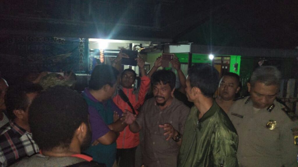Pada saat negoisasi berlangsung, Yohanes dan Felle dipukul, kemudian Yohanes diludahi di wajah, dicaci-maki namun mereka tidak membalasnya, sementara itu aparat kemanan hanya menonton dan melakukan proses pembiaran. Pada pukul 19.40 WIB, ormas, TNI dan Polisi, mulai membanting pintu dan jendela kontrakan, secara brutal, dan memaksa membubarkan serta memulangkan peserta diskusi. Mereka kemudian menggiring peserta diskusi ke luar kontrakan dan melakukan penggrebekan kamar-kamar. RT kemudian menyita barang berupa 8 unit laptop, 2 unit HP Oppo, 2 unit HP Samsung, 1 proyektor, dan barang-barang lainnya yang masih berada di dalam kontrakan. Beberapa barang di dalam kontrakan juga sempat dirusak oleh Ormas. Kontrakan tersebut kemudian dikunci dan ‘diamankan’ oleh warga.